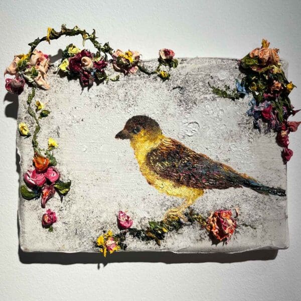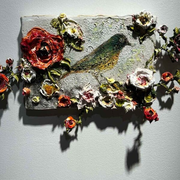 Die großformatigen Bilder überraschen mit einem außergewöhnlichen Effekt, die einer speziellen Auftragstechnik geschuldet sind: Mehrere Schichten Kunstharz, die mit Acryl- und Ölfarben, Aquarellkreiden, Wachsmalstiften und Bleistift überarbeitet werden und somit die Bilder in einer "3D"-Optik erscheinen lassen.