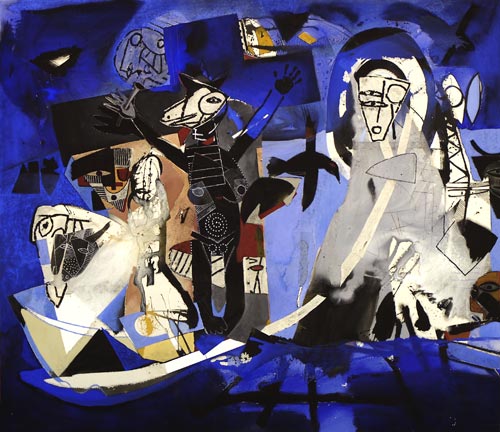 Juan Logan was born in Nashville, Tennessee in 1946 and now works in Belmont, North Carolina. In his creative period, which has lasted for more than 30 years, he has worked in a wide variety of techniques - printmaking, painting, sculpture and installation - and with different materials such as wood, metal, ceramics, canvas and paper. He has exhibited extensively nationally and internationally, and his work is included in numerous public and private collections like the Philadelphia Museum of Art, the Baltimore Museum of Art, the Whitney Museum of American art and the Boulder Museum of Contemporary Art.A part of Logan´s works addresses issues that directly focus on the situation and experience of Black Americans, others relate to human experience as a whole and various forms of abuse and violence at the individual, family, societal and general human level. Like maps these works make visible how hierarchical relationships and social stereotypes shape and leave their imprint on individuals, groups and institutions. The material and mental landscapes of contemporary life become visible. Thus, on the one hand, these works call to memory events that are too easily suppressed, like e.g. the situation of fleeing people on their life-threatening journey. On the other hand they mark the way in which these events are perceived, documented and remembered. In many of the works the seriousness of these issues contrasts sharply with the beauty and aesthetic radiance of the design as well as the use of material like in Elegy LIV: diamond dust sparkles in what may be a drop of blood, a tear or even an open wound. The "Elegy" series deals with the complex relation between memory and incidents. Before these become historical events, they must be preserved as memories. Elegies point to this, they are visible fragments of what remains. Thus, in Juan Logan's paintings human experience is transformed into specific colors, shapes or lines as ciphers representing places, people and things in memory. Thus we are challenged to see the whole and commemorate what was once complete.