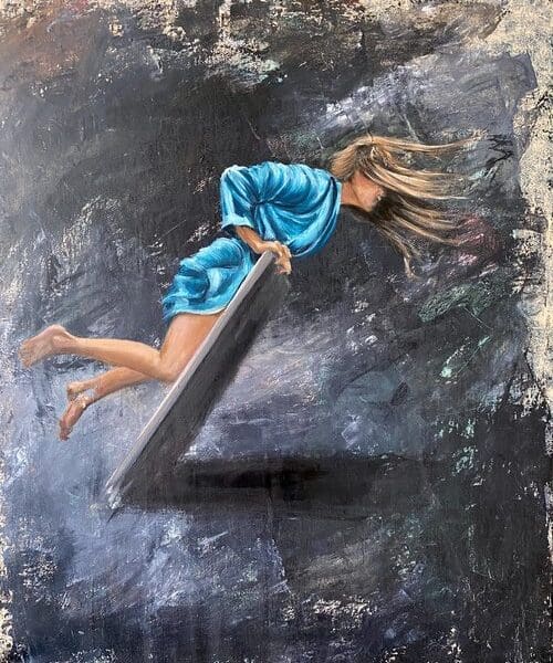 Die großformatigen Bilder überraschen mit einem außergewöhnlichen Effekt, die einer speziellen Auftragstechnik geschuldet sind: Mehrere Schichten Kunstharz, die mit Acryl- und Ölfarben, Aquarellkreiden, Wachsmalstiften und Bleistift überarbeitet werden und somit die Bilder in einer "3D"-Optik erscheinen lassen.