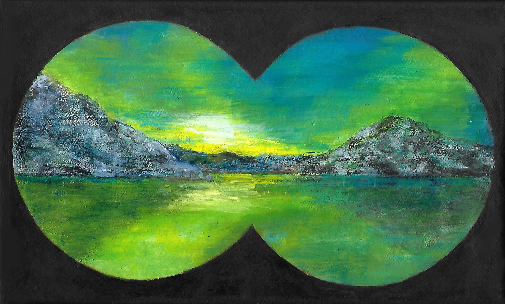 Die großformatigen Bilder überraschen mit einem außergewöhnlichen Effekt, die einer speziellen Auftragstechnik geschuldet sind: Mehrere Schichten Kunstharz, die mit Acryl- und Ölfarben, Aquarellkreiden, Wachsmalstiften und Bleistift überarbeitet werden und somit die Bilder in einer "3D"-Optik erscheinen lassen.