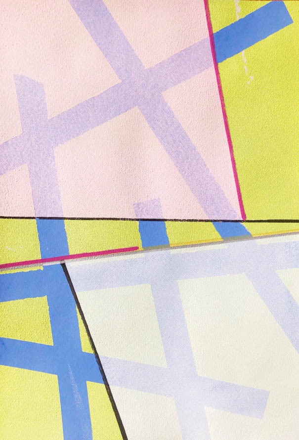 Benvenuto arbeitet oft mit Formen, Farbblöcken, Linien: einfache Geometrien, die das "Ding" und das "Ding" jenseits des Dings ausdrücken: das Unsichtbare, die Kraft, die jenseits dessen existiert, was wir mit dem bloßen Auge sehen können.