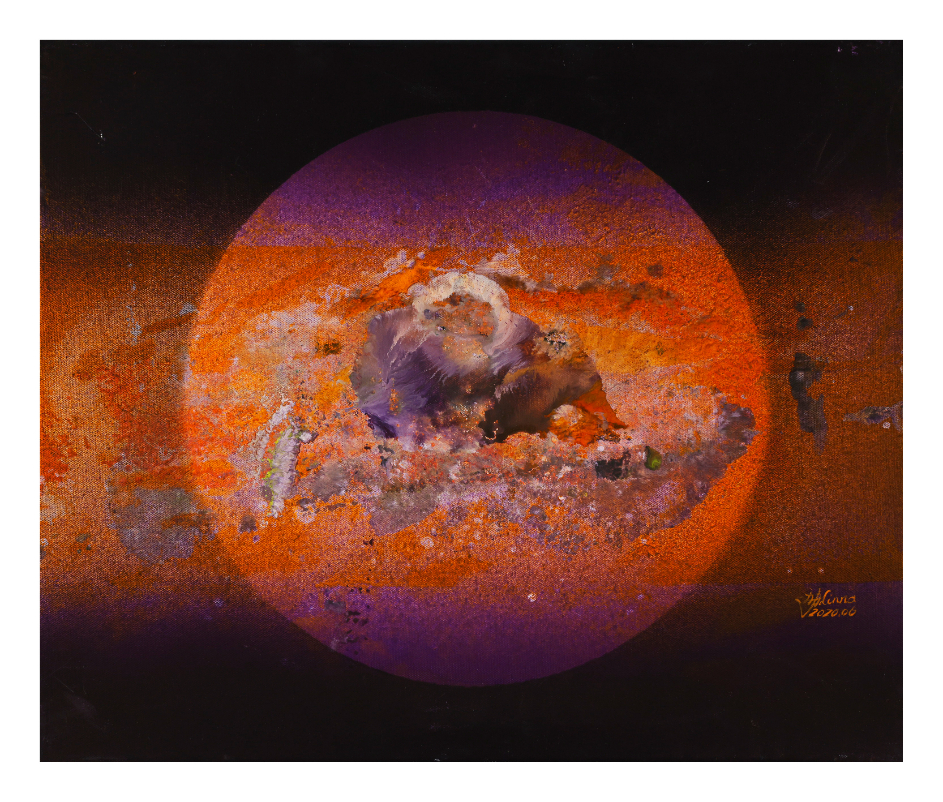 Benvenuto arbeitet oft mit Formen, Farbblöcken, Linien: einfache Geometrien, die das "Ding" und das "Ding" jenseits des Dings ausdrücken: das Unsichtbare, die Kraft, die jenseits dessen existiert, was wir mit dem bloßen Auge sehen können.