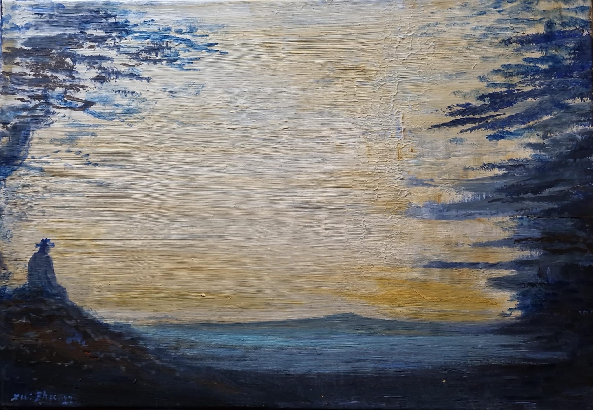 «Seit 2014 konzentriere ich mich auf die Erstellung von Landschaftsbildern. Hinter der Landschaftsmalerei steht nämlich unser Verständnis und unser Denken über den Begriff der Natur. Nachdem ich mit verschiedenen Ausdrucksmitteln und Malstilen experimentiert habe, ist es für mich ein Prozess der Rückkehr. Eine Rückkehr zu der östlichen Kultur, die ich als kleiner Junge studiert habe, zu den Ursprüngen der alten chinesischen Malerei, zum Geist der europäischen romantischen Malerei. Eine Rückkehr zu den Bergen und Wäldern, die von den chinesischen Dichtern und Hölderlin beschrieben wurden. Die Natur ist die Quelle sowohl der östlichen als auch der westlichen Kultur, sie ist die Quelle und die Heimat unserer gemeinsamen Kultur als menschliche Wesen.