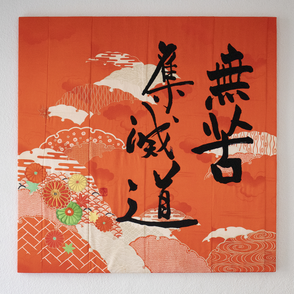 Seidenkimono mit Kalligraphie-Applikationen