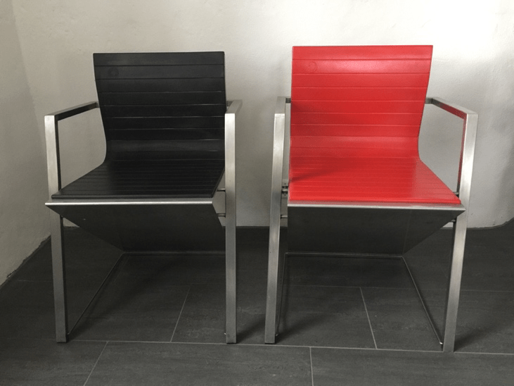 Dieser Stuhl wurde für das Café Casino auf der documenta 8 (1987) in Kassel, Deutschland, entworfen.